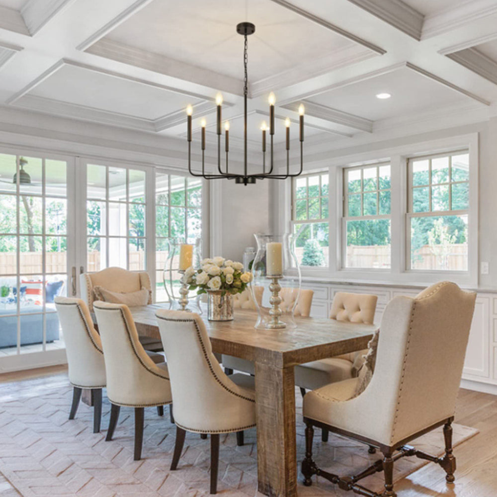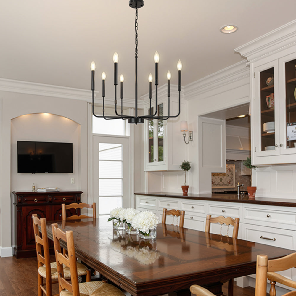 Trött på platt, oinspirerad belysning som faller kort i stil? Denna moderna industriella takkrona levererar djärv karaktär och atmosfäriskt ljus till ditt vardagsrum. Tillverkad av hållbart järn med en elegant svart eller guldfinish, skapar dess rena, geometriska silhuett och flertalet armar djup och dramatik medan den belyser ditt vardagsrum, matplats eller öppna kök. Finns i 6- eller 8-ljuskällor konfigurationer, erbjuder denna armatur både arkitektonisk flair och funktionell belysning för att höja din inredning sömlöst.