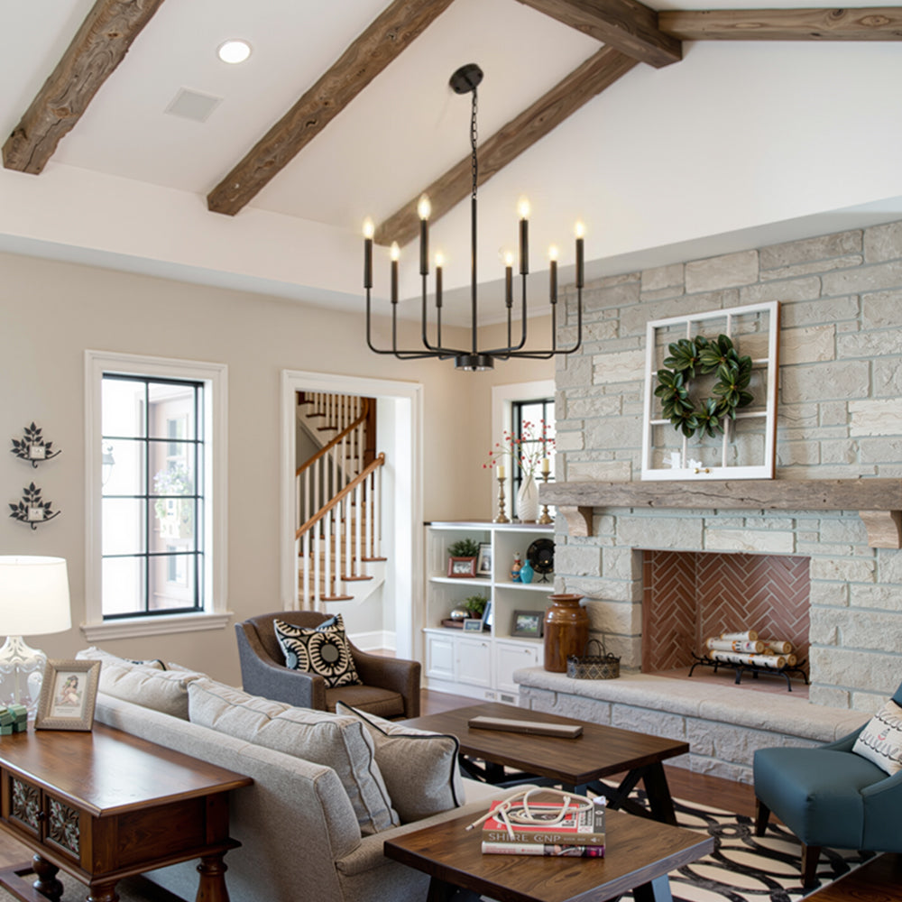 - Multi-ljuskälla design (6 eller 8 glödlampor) ger generös, balanserad belysning över större ytor