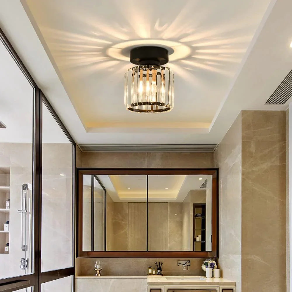 Modern Kristalltaklampa Med Guld- Och Svart-Akcent – Elegant Belysning För Ditt Hem