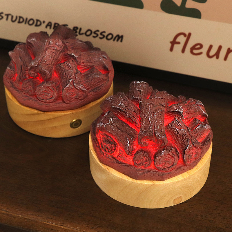 Modern LED-bordslampa – rund trä- och hartsdesign