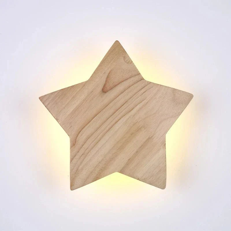 Modern Stjärnformad Vägglampa i Massivt Trä och Järn för Vardagsrum och Sovrum – E27 Vägglampor Inomhus Sconces