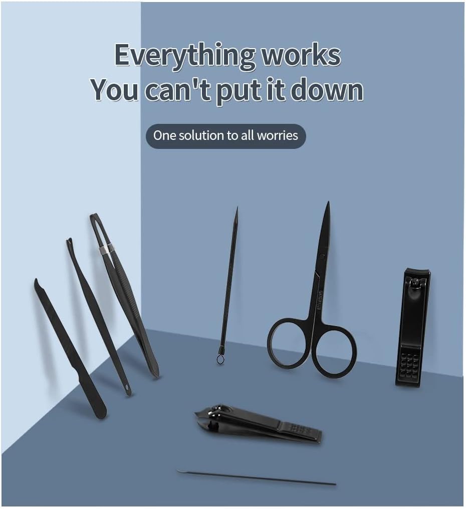 Uppgradera din grooming med detta kompakta grooming kit i rostfritt stål - din allt-i-ett lösning för nagelvård hemma eller när du reser. Detta 7-delars nagelklipperset erbjuder precision, hållbarhet och komfort, allt prydligt packat i en vattentät reseförpackning. Oavsett om du är hemma eller på språng, håller detta kit dina fingrar och tår ser rena och snygga ut med minimal ansträngning.