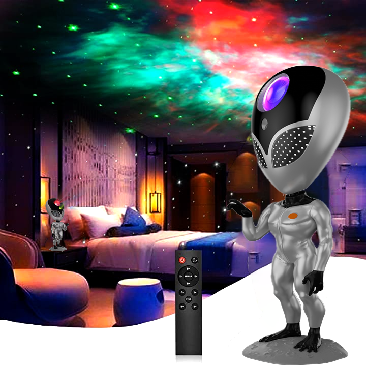 Rymdvarelsens huvud och armar roterar fritt i 360 grader, så att du kan styra riktningen av dimprojektorn. Det är mer än en nattlampa; det är en lekfull följeslagare som tillför spänning till ditt liv.