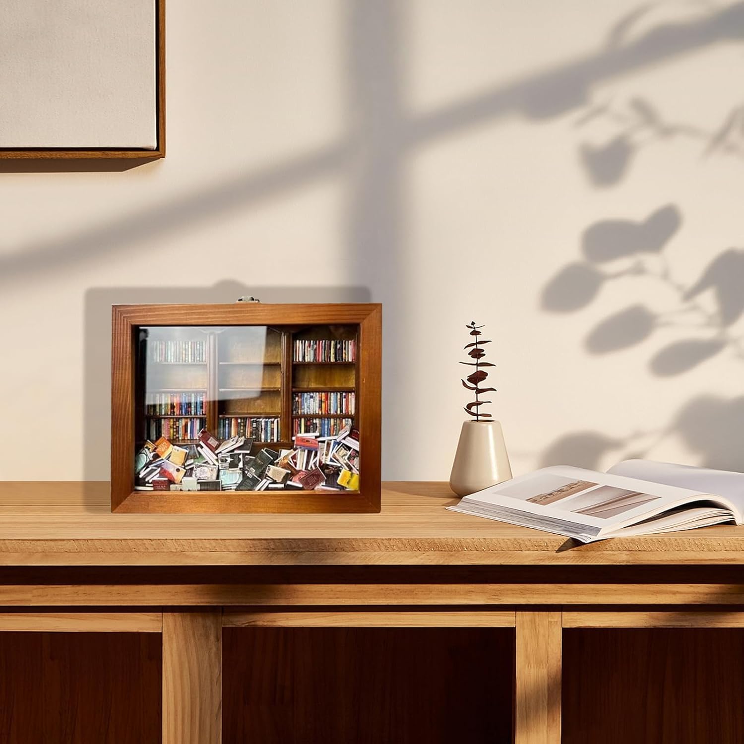 Med sin handgjorda hantverk och interaktiva design, är denna miniature bokhylla en omtänksam och kreativ present för bokälskare, konstentusiaster och de som uppskattar medvetna aktiviteter.