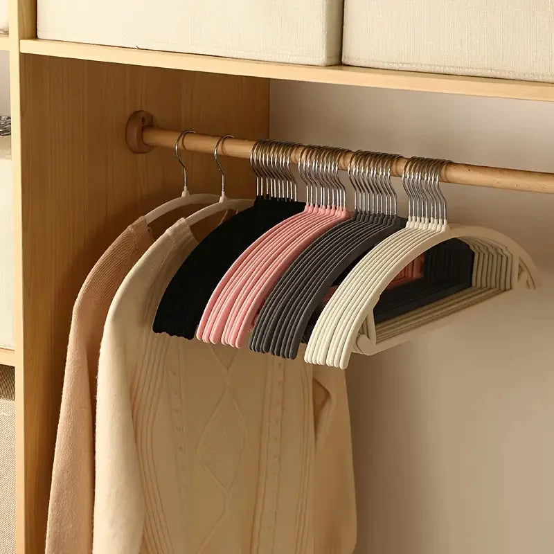 Transformera din garderob med detta set av 10 halkfria, utrymmessparande galgar, designade för att hålla din garderob organiserad och effektiv. Varje galge är tillverkad med en snygg design som maximerar garderobsutrymmet utan att kompromissa med hållbarheten. Den kompakta designen gör att du kan förvara fler kläder på en mindre yta, vilket gör den idealisk för alla garderober. Den halkfria ytan håller säkert på ömtåliga tyger som siden och satin, vilket förhindrar att plagg glider eller faller av.