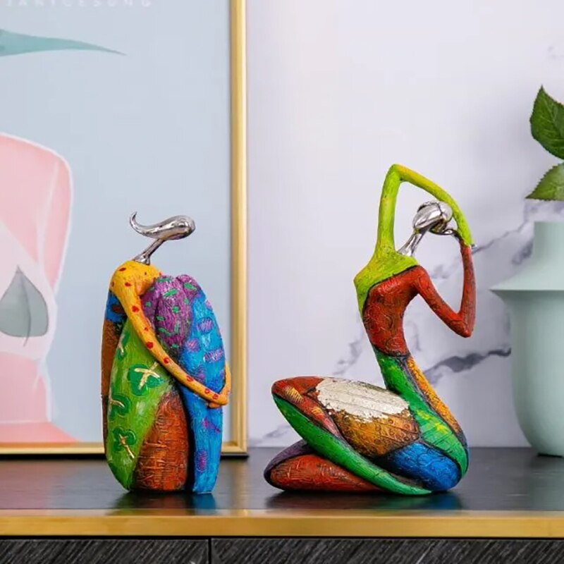 NordArt förvandlar varje rum till ett utställningsrum med sin färgstarka, abstrakta form och moderna estetik. Denna skulptur, som blandar geometrisk rytm med lekfull balans, blir genast ett samtalsämne. Oavsett om den står på en konsol, ett skrivbord eller en öppen hylla, tillför den frisk energi och visuell spänning till din miljö.