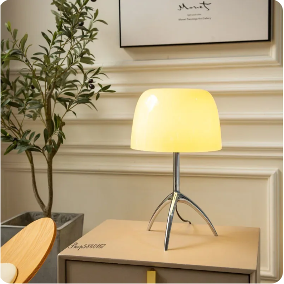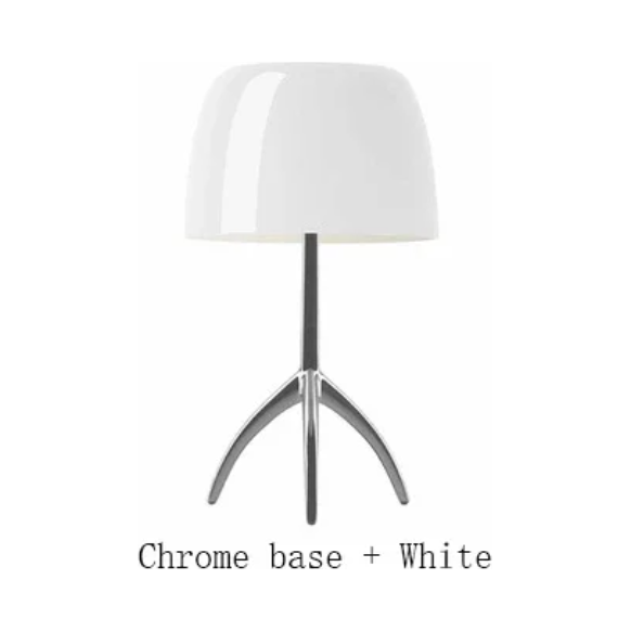 Upptäck den nya postmoderna stående bordslampan, ett mästerverk av italienska designers. Denna varma och eleganta lampa står ut med sin förkromade bas och varma vita ljuskällor. Perfekt för din moderna lägenhet eller stiliga sovrum, den kommer att lyfta din inredning till en hög nivå.