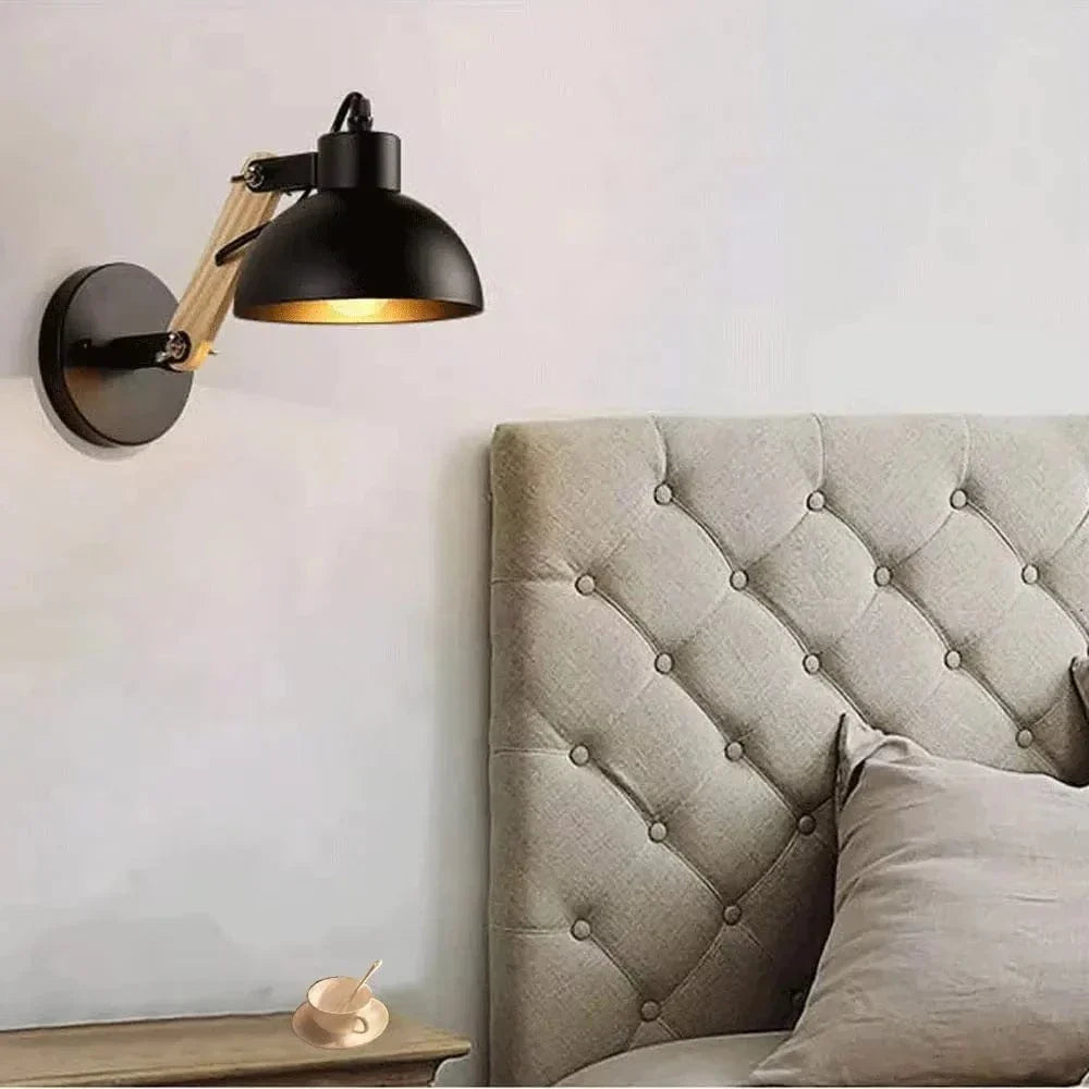 Nordisk Justerbar Vägglampa – Järn och Trä Sconcelampa för Modern Hem- och Hotellinredning