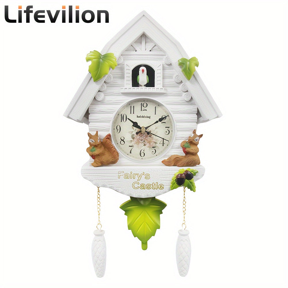Nordisk Koekoeksklocka med Fågelhus - Dag- och Uralarm, Pendelklocka för Vardagsrum och Kontorsdekoration