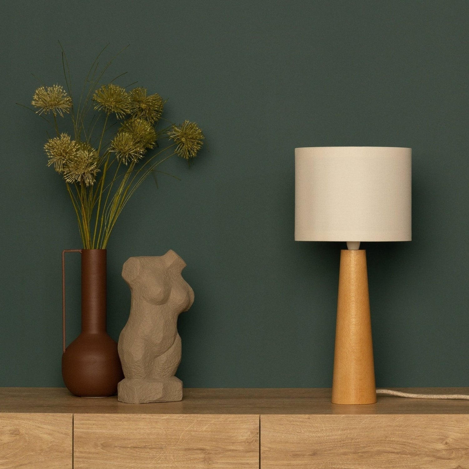 - Handgjord och unik: Varje lampa är handtillverkad av massiv bok, med en unik träådring.