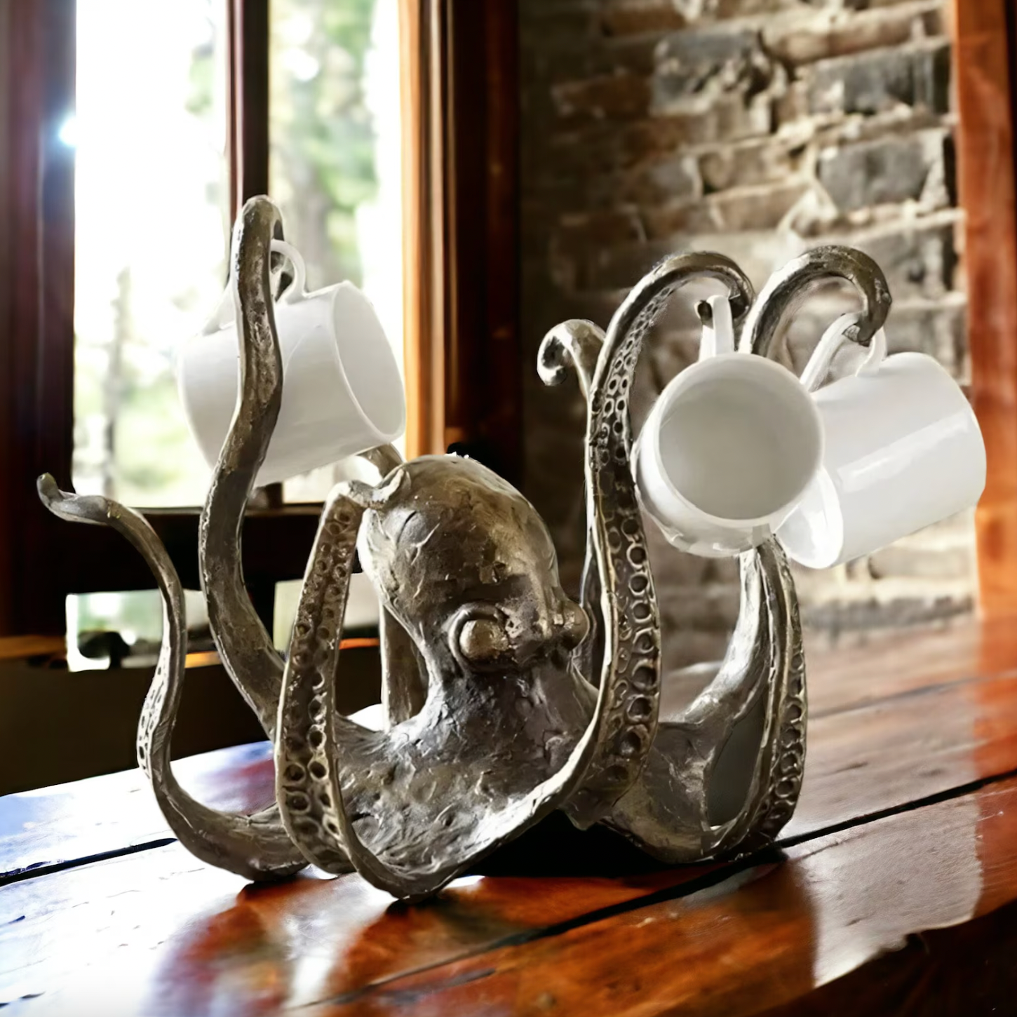 OctoSip tekrus-hållaren har en distinkt design i form av en bläckfisk, där armarna elegant stöder två muggar. Denna kreativa skulptur tillför ett lekfullt, konstnärligt inslag till ditt kök eller matplats och gör det till ett iögonfallande samtalsämne. Dess roliga design är perfekt för dem som värdesätter quirky, funktionell dekoration.