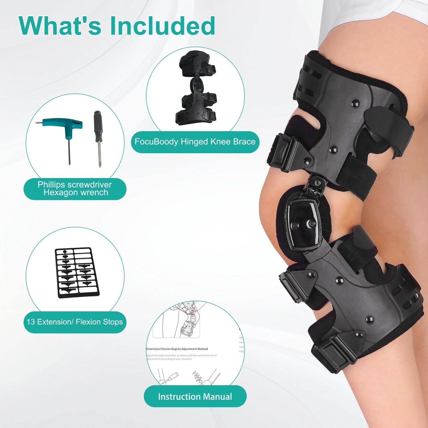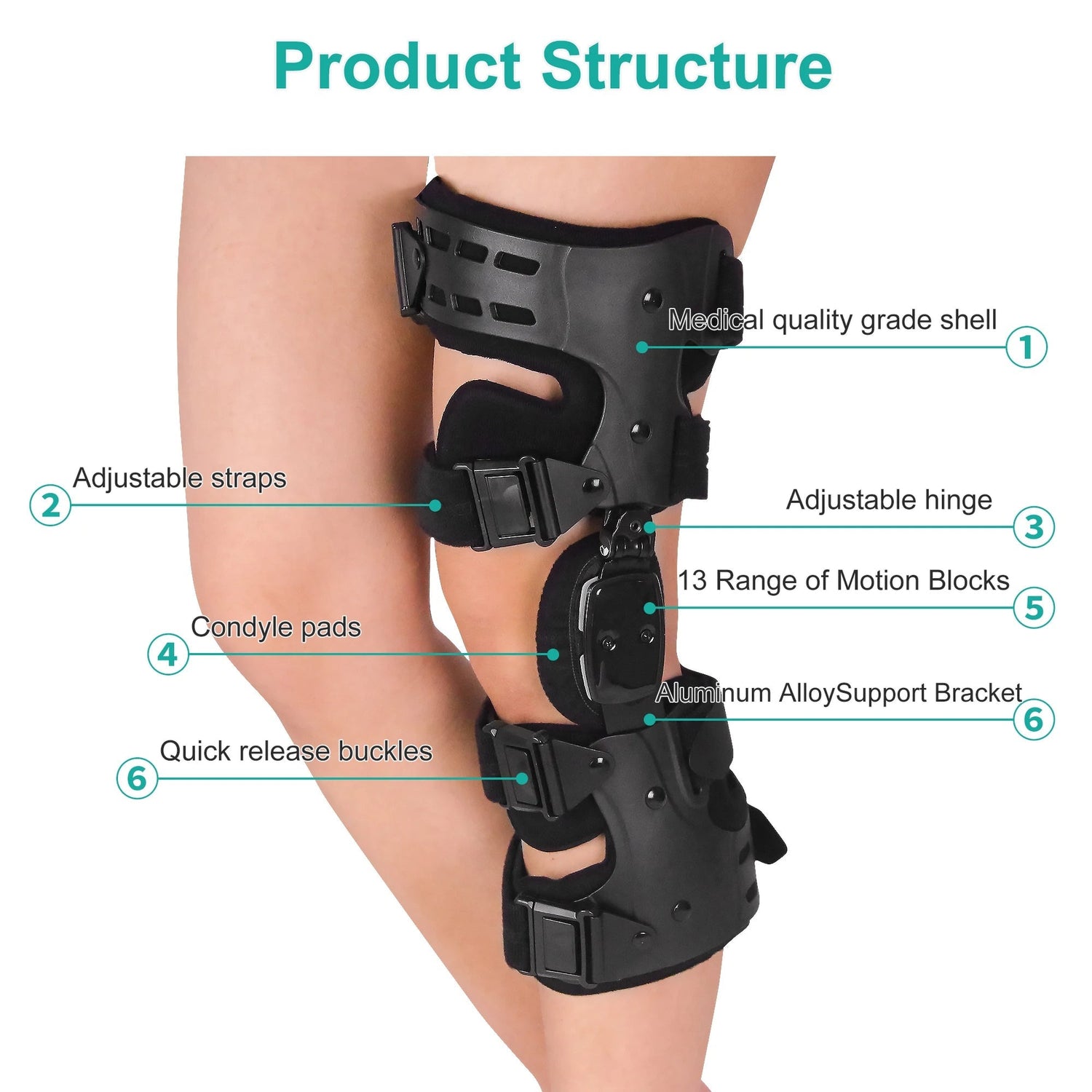 Kommer med valfria flexions- och extensionsinsatser för att reglera rörelse, förhindra överdriven böjning och skydda mot hyperextension – lämpligt för post-kirurgisk återhämtning eller rehabilitering efter skada.