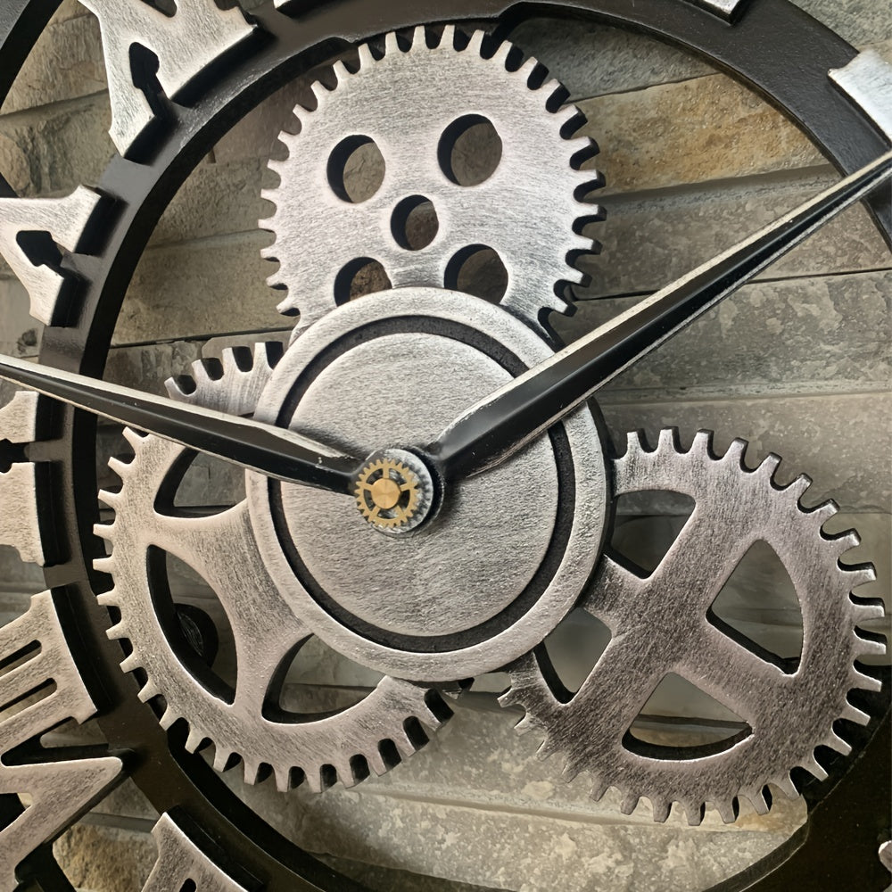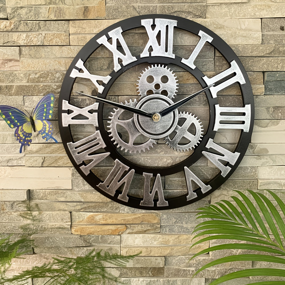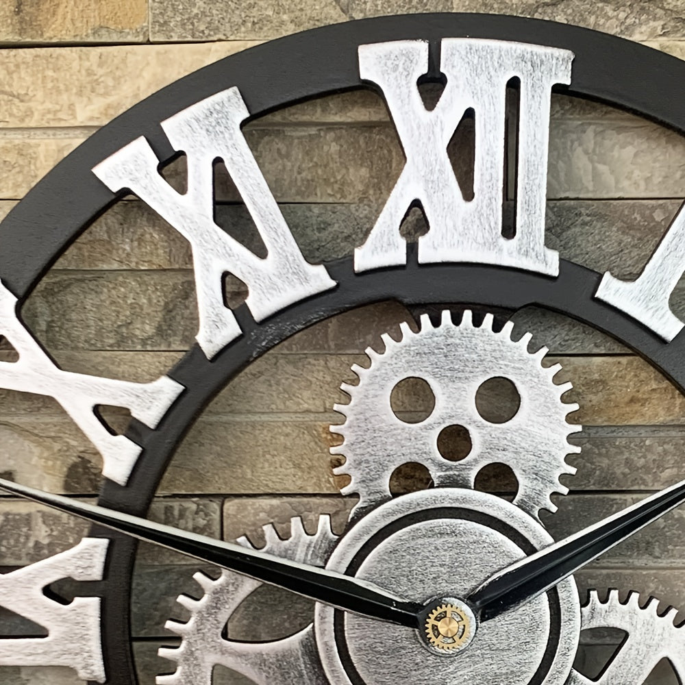 Överdimensionerad Silverfärgad Romersk Kuggväxel Vägghängd Klocka - Tyst Klocka för Vardagsrum, Kontor och Kök