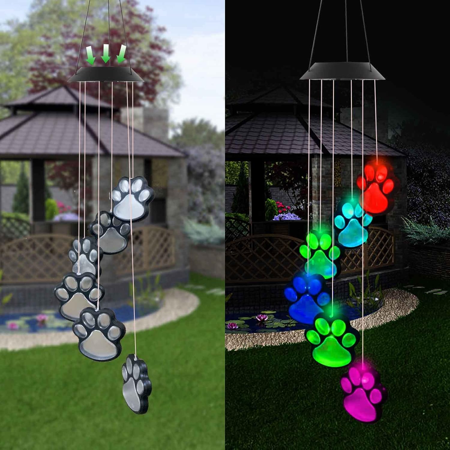 Med sin lekfulla design med sex elegant hängande tassavtryck, skapar PetGlow-lampan en härlig visuell upplevelse både dag och natt. De färgskiftande LED-lamporna ger ett fantastiskt spektrum av färger som förvandlar din trädgård till ett förtrollande skådespel. Byggd för att motstå olika väderförhållanden, säkerställer denna hållbara produkt långvarig prestanda.