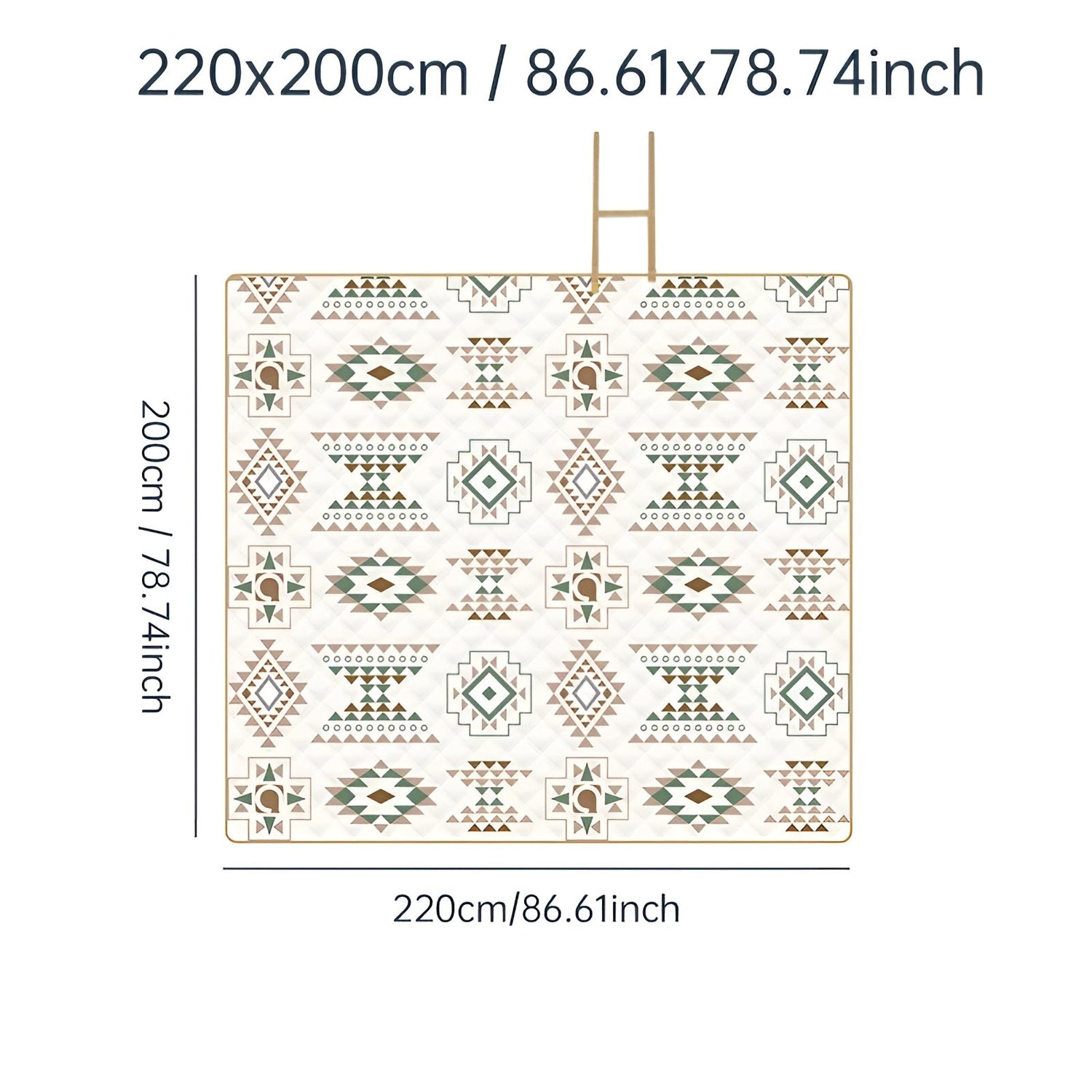 Upptäck de många andra funktioner som gör din utomhustid ännu trevligare: Ytan gjord av mjukt, hudvänligt polyester ger en avkopplande sittupplevelse, medan den hållbara undersidan av PEVA-folien erbjuder hållbart skydd. Tack vare den lätta konstruktionen kan du enkelt vika ihop och förvara filten – idealiskt för familjer, hundar, eller utflykter. Dessutom är den UV-beständig, så färgerna förblir färska även efter många timmar i solen. Perfekt genomtänkt för resor, festivaler, eller avkopplande picknickar!