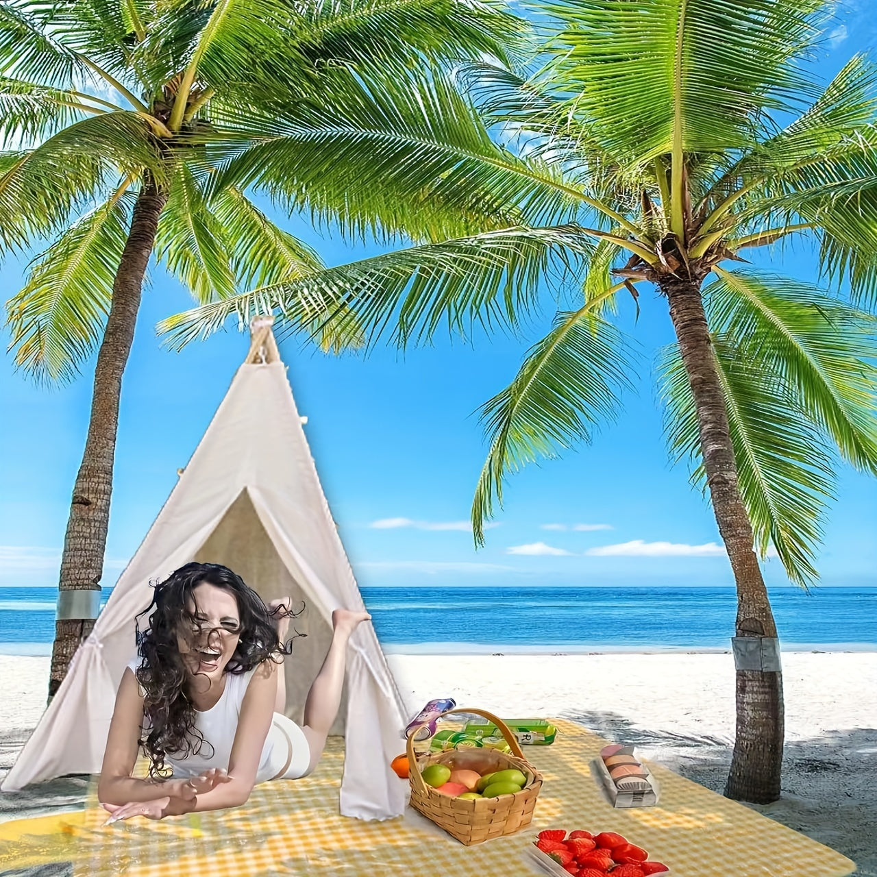Gör dina utomhusstunder mer bekväma med denna vattentät picknickfilt, designad för att vara både sandresistent och lätt att bära. Dess hållbara polyester yta och inbyggda fuktbarriär skyddar dig från fuktig mark, sand och smuts. Perfekt för stranden, parken eller camping, denna lätta och hopfällbara matta är din bästa utomhuskompis.