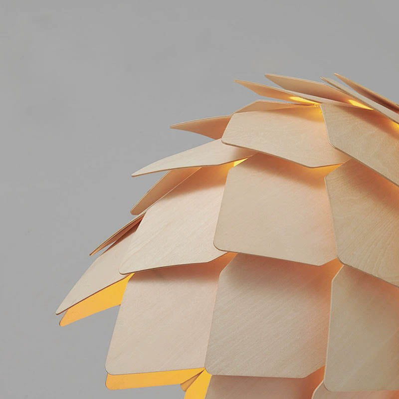 PineGlow-pendeln erbjuder en vacker unik design, med flera lager som skapar utseendet av en furukotte. Denna iögonfallande struktur tillåter ljuset att filtrera genom hålen, vilket ger en mjuk, nedåtgående glöd som förstärker fokusområdet nedanför. Idealisk för att lyfta atmosfären i vardagsrum, matplatser eller vilket rum som helst som behöver stilfull belysning, tillför PineGlow en touch av naturinspirerad elegans till ditt hem.