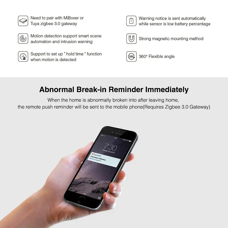 PIR-rörelsesensorn (Zigbee 3.0) ger mer säkerhet och komfort i din vardag. Oavsett om det handlar om automatisk ljusstyrning, inbrottsskydd eller integration i smarta scenarier – denna enhet gör ditt hem smartare och mer effektivt. Slut med onödig energiförbrukning eller manuell ljusstyrning – njut av ett uppkopplat hem som anpassar sig efter dina behov.