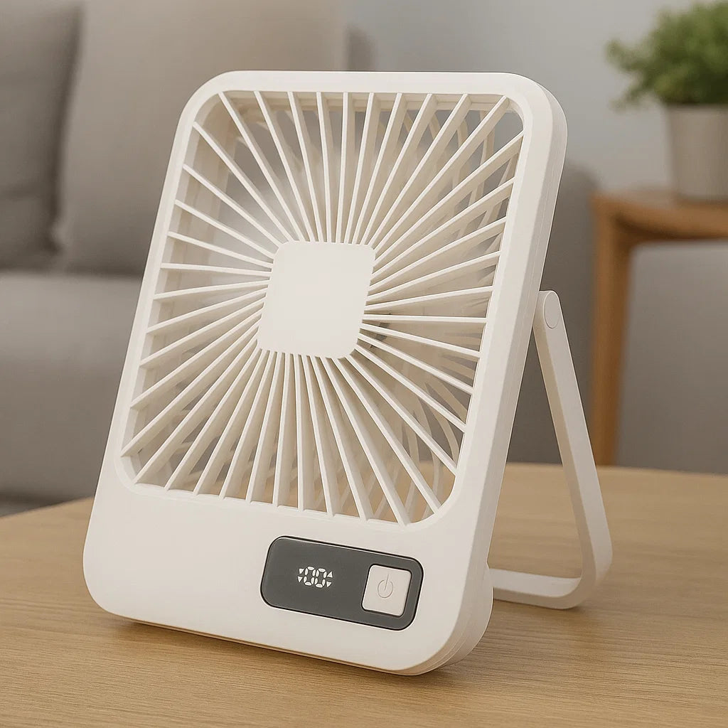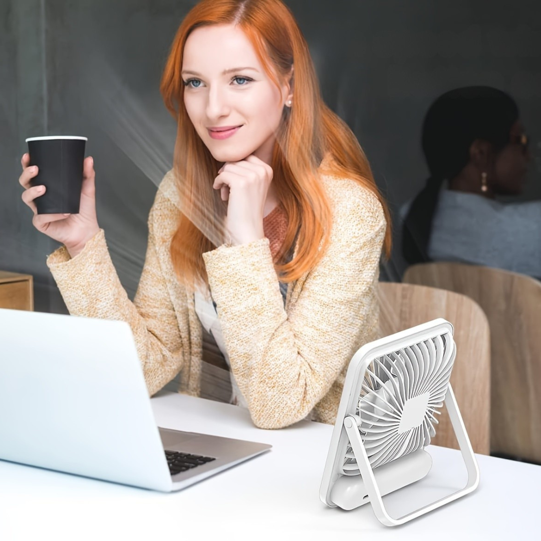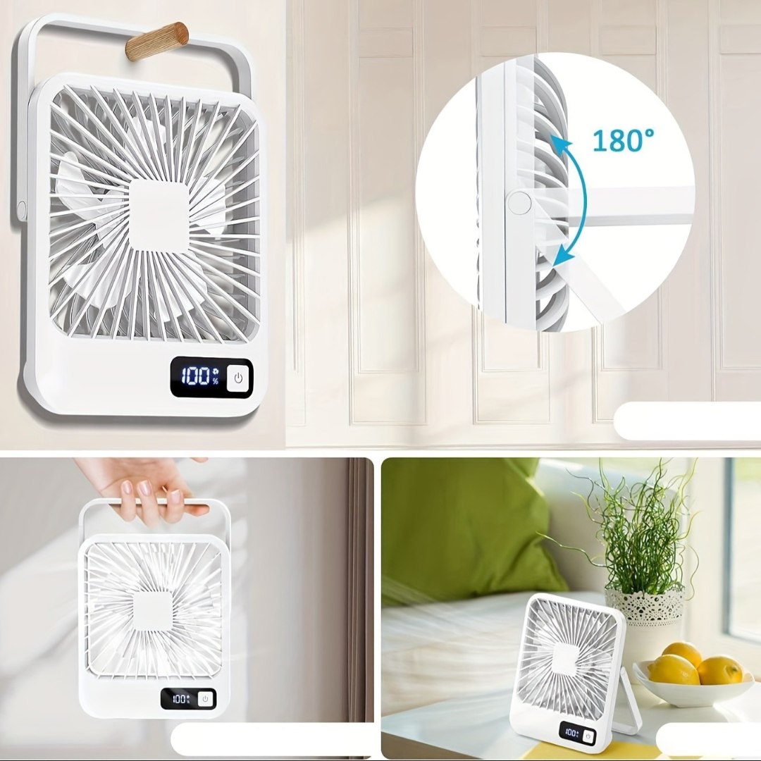 Slå värmen med denna bärbara USB-laddningsbara bordfläkt. Perfekt för hemmet, kontoret eller resor, den ger kraftfull kylning med tyst drift. Med sin lätta och kompakta design kan du placera den på ett skrivbord, sängbord eller ta den med dig. Med ett inbyggt uppladdningsbart batteri och enkel USB-laddning är denna fläkt din idealiska följeslagare för att hålla dig sval var som helst.