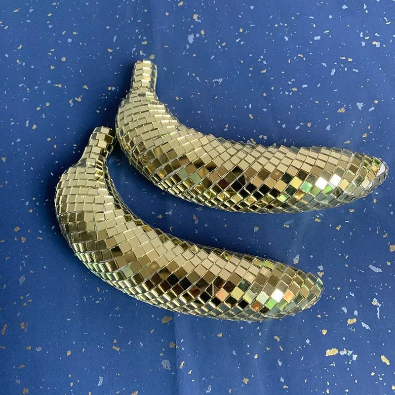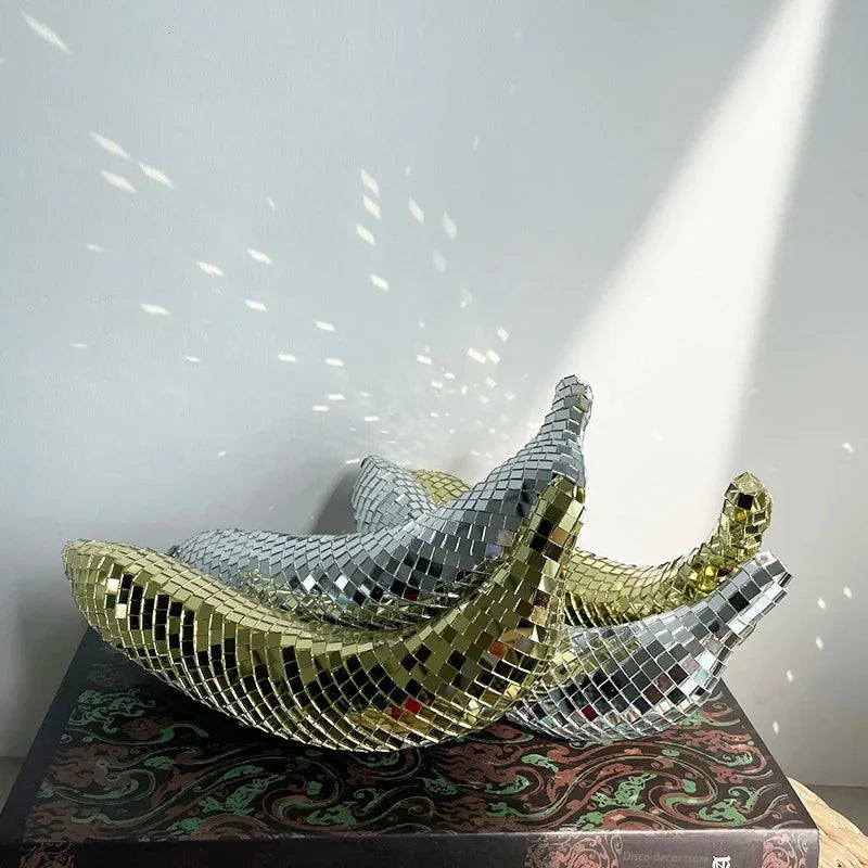 Transformera ditt vardagsrum med Apple & Banana Disco Ball Fruit Decoration - Glass Art, ett unikt konstverk som kombinerar lekfullhet och elegans. Denna iögonfallande dekoration är designad för att skapa glädje och livfullhet i alla miljöer, vilket gör den till en idealisk accent för barer, scener eller middagsbord.