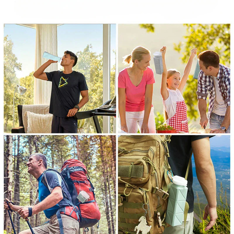 Den fällbara silikonflaskan är en perfekt lösning för aktiva människor som är mycket på språng och inte vill bära en tung flaska. Enkelt att fälla ihop när den är tom och bekvämt förvara i varje väska – för mer flexibilitet i vardagen.
