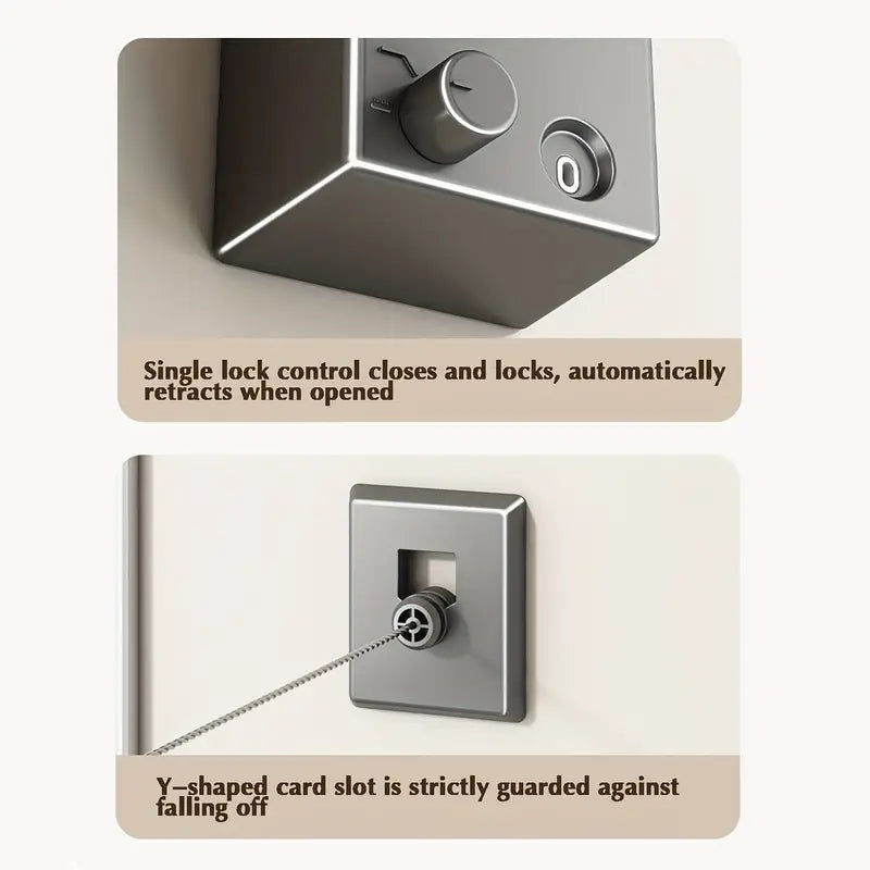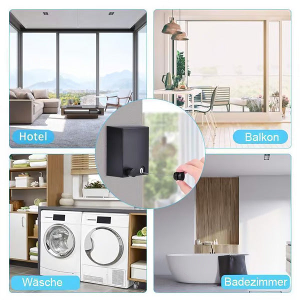 - 🛠️ Enkel installation och hantering: Fäst den enkelt på vägg eller tak och dra ut linan utan ansträngning.