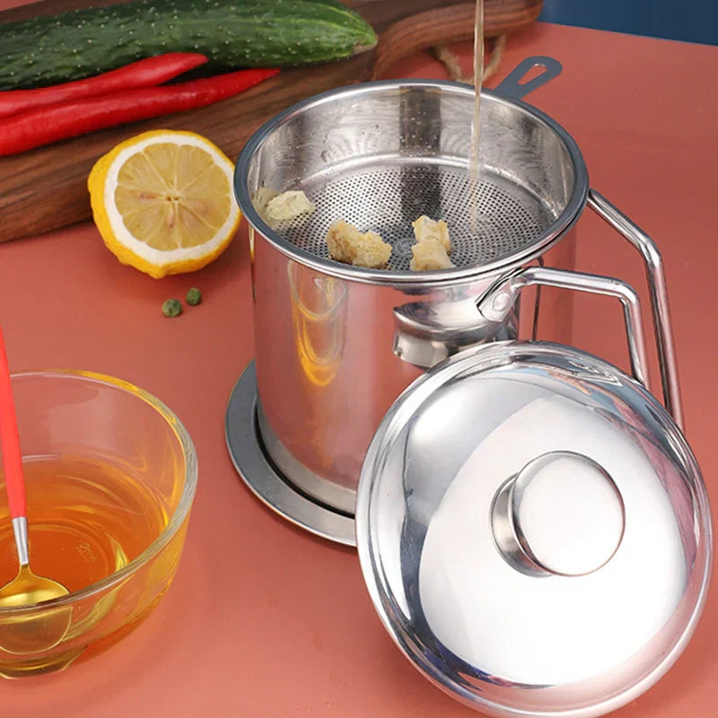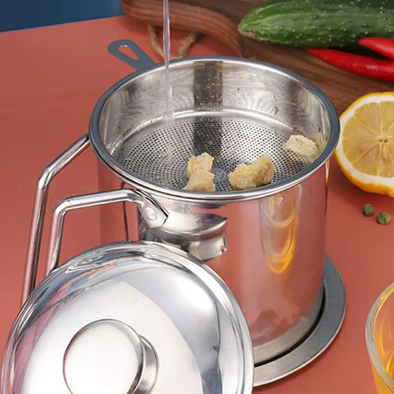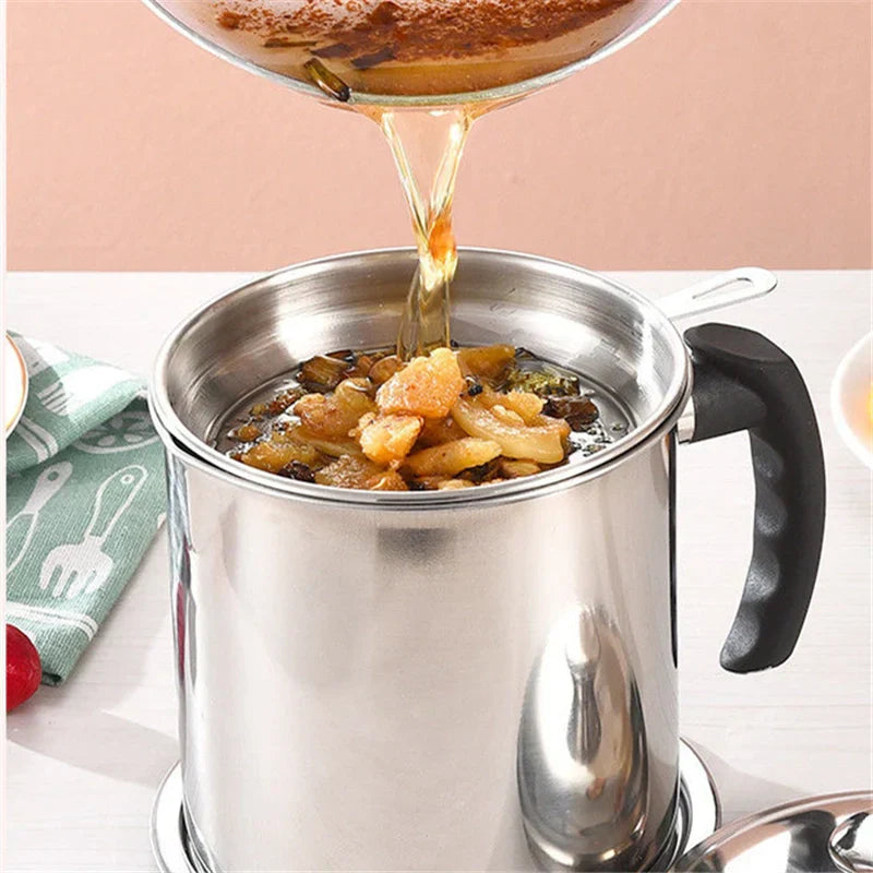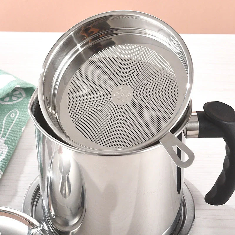 Förbättra din matlagningsupplevelse med PurePour. Denna oljesil är designad för effektivitet och stil och filtrerar matrester på ett ögonblick, så att du enkelt kan återanvända oljan. Tillverkad av robust, livsmedelssäker rostfri stål, garanterar den hållbarhet och förbättrar samtidigt kvaliteten på dina måltider. Med ergonomiskt handtag och dammskyddande lock är PurePour ett rent och användarvänligt tillskott till ditt kök.
