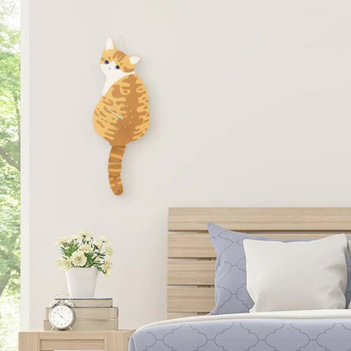 PurrTick väggklocka har en busig katt med svans som viftar, vilket ger en rolig och lekfull känsla till ditt rum. Dess tysta svängande rörelse tillför livlighet, medan den upprätthåller en fridfull atmosfär. Denna klocka är en perfekt blandning av kreativitet och funktionalitet.