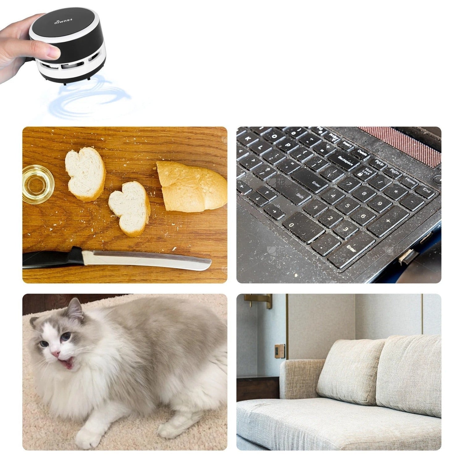 QuickClean är lätt och användarvänlig, vilket möjliggör bekväm hantering och förvaring. Dess lilla storlek gör att den enkelt får plats på ditt skrivbord eller kan gömmas i en låda när den inte används. Dammsugaren har små borstar i botten för att förbättra dess rengöringsförmåga och säkerställa att inget skräp lämnas kvar. Dessutom är det enkelt att ta isär och rengöra dammsugaren, vilket gör underhållet enkelt.