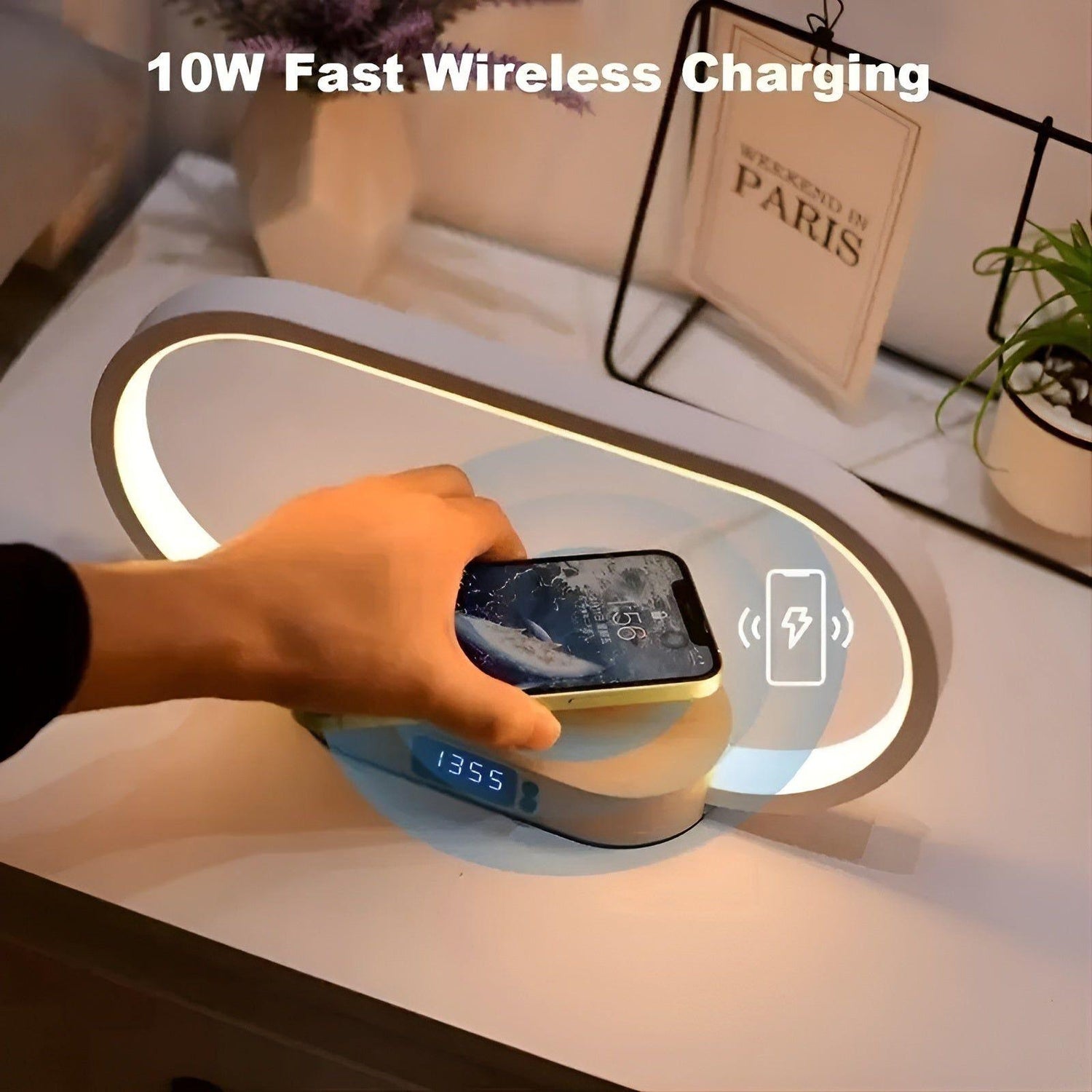 RadiantCharge Lampa - Multifunktionell Trådlös Laddningsplatta Skrivbordsur LED Skrivbordslampa