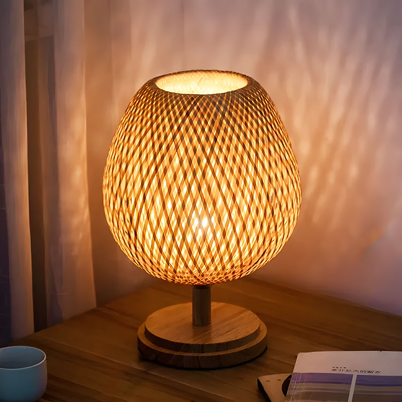 RattanCraft - Handgjord sänglampa i rotting och trä för naturlig elegans