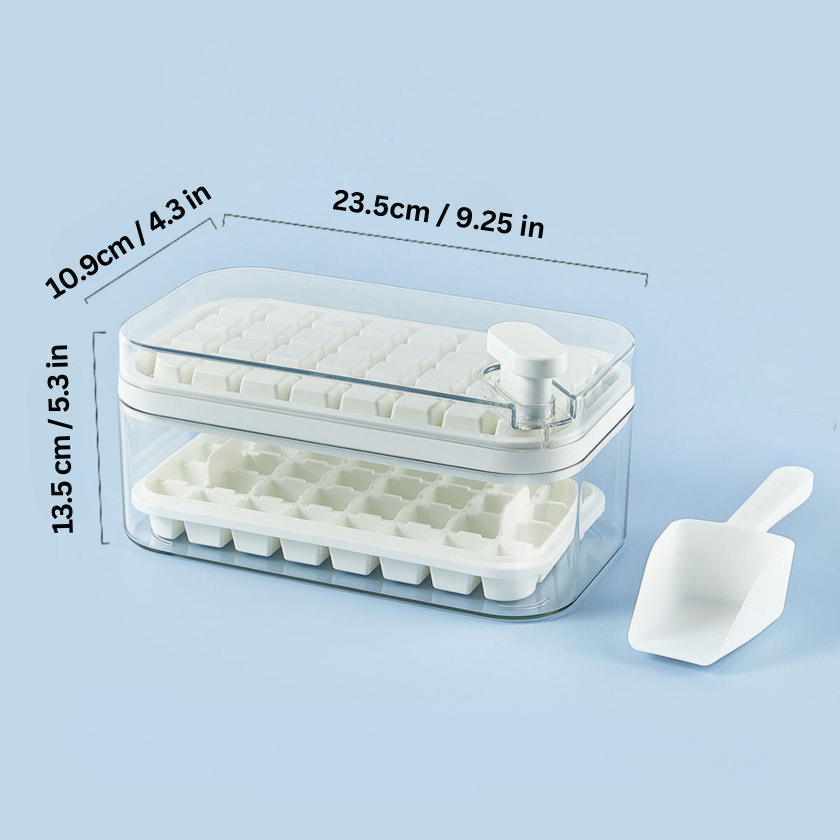Transformera sättet du fryser, förvarar och serverar is med Rayvia One-Click Ice Tray System - ett revolutionerande isbrädesystem med ett klick, som ger dig den ultimata bekvämligheten och en uppfriskande upplevelse som är så enkel som trycket på en knapp, vilket skapar perfekta isbitar som kommer att förstärka varje sipp av din dryck - det är dags att höja din isupplevelse, utan ansträngning!