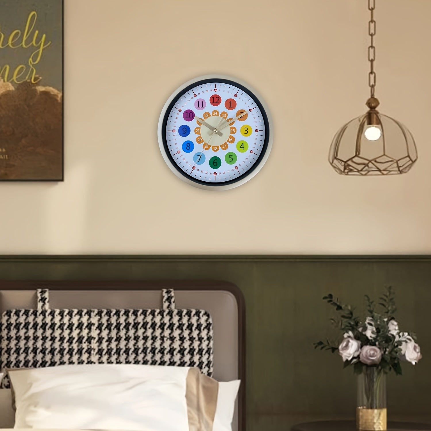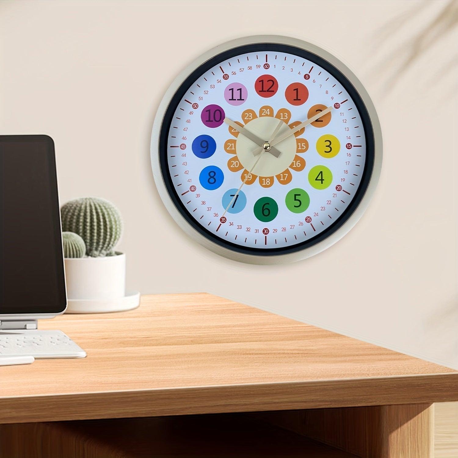 Med tydligt markerade färgglada siffror uppmuntrar RainbowTime barn att utveckla sina tidsberäkningsförmågor på ett interaktivt sätt. Den ljudlösa kvartsklockan säkerställer en fredlig miljö, fri från distraherande tickande ljud. Denna klocka kombinerar funktionalitet och roligt och stödjer lärande samtidigt som den tillför en ljus och inbjudande touch till varje miljö.