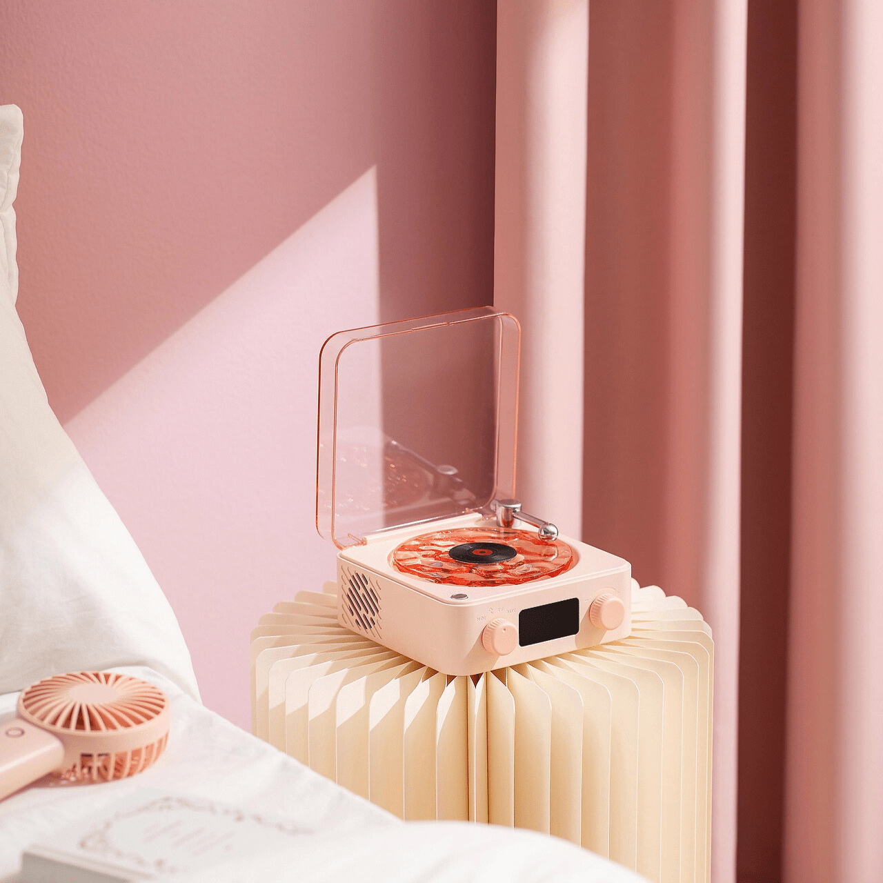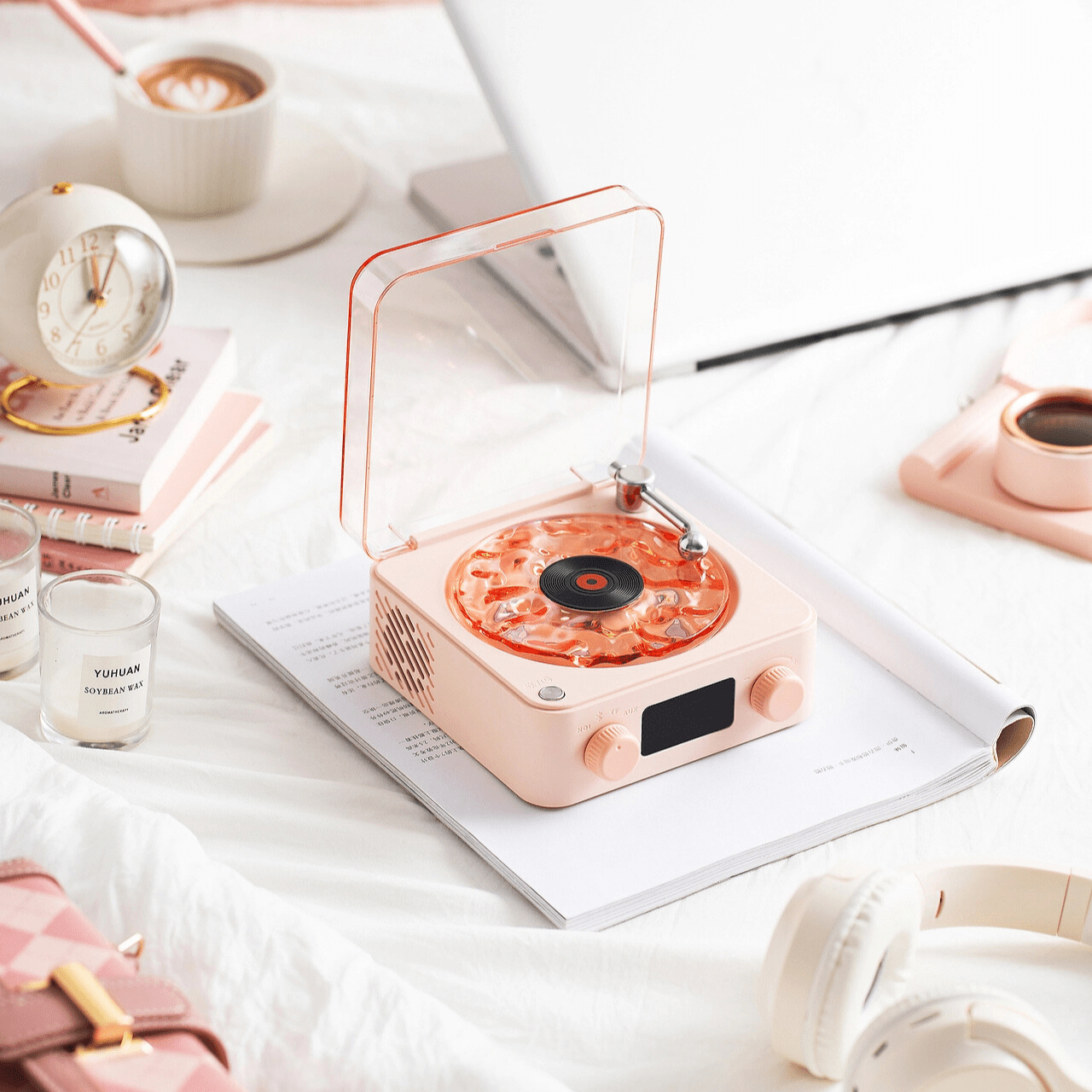 - Retrostil Estetik: Utformad för att likna en vintage vinylspelare, med en stilren och modern tidsvisning för ökad funktionalitet.