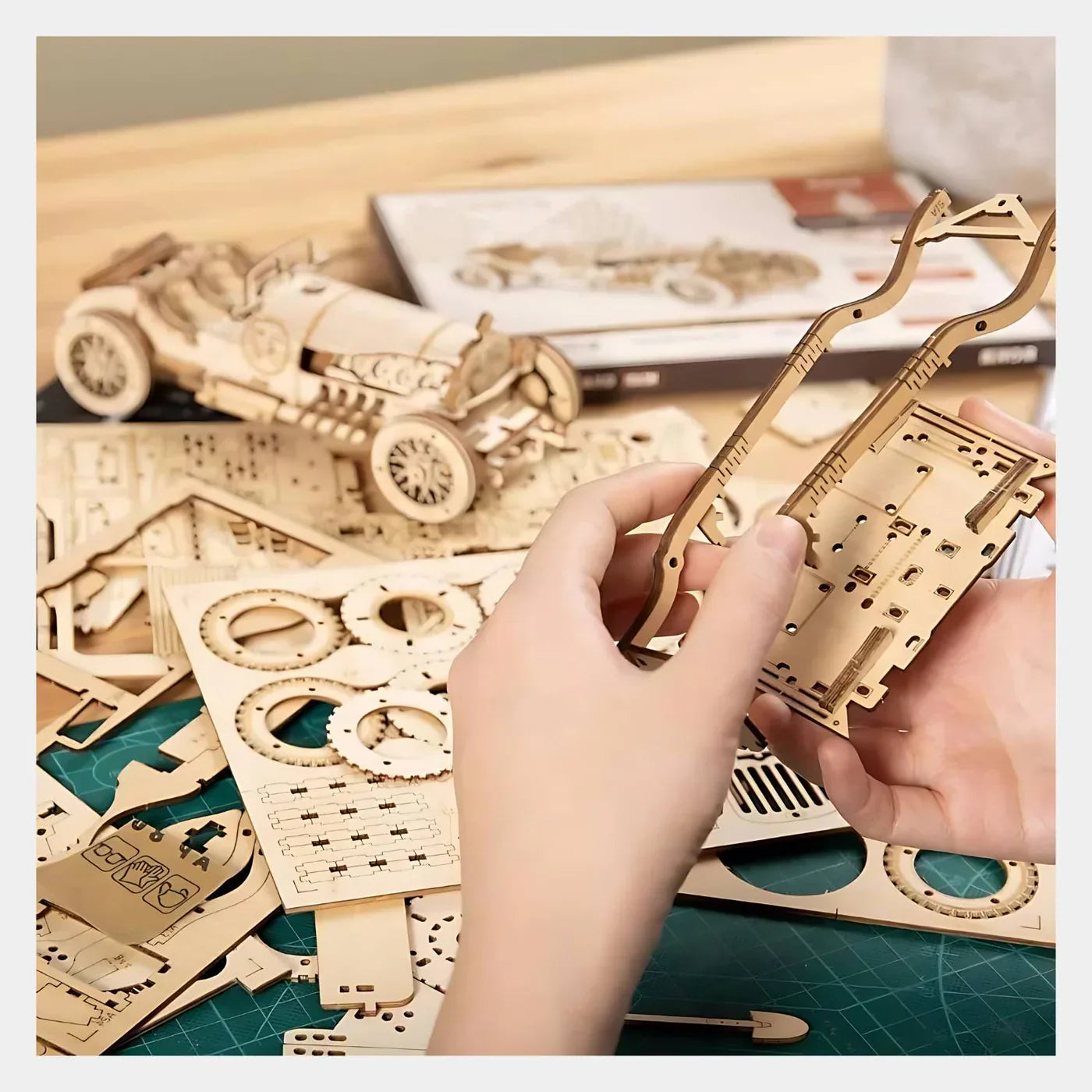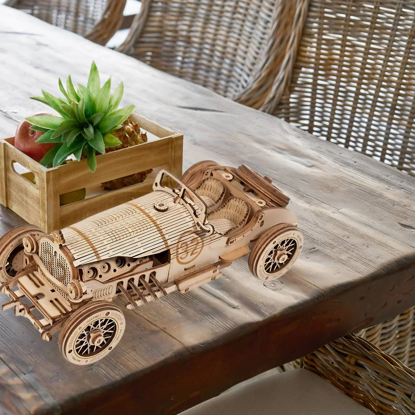 RetroRacer-satsen fångar essensen av gamla Grand Prix-bilar, vilket gör den till en unik tillskott till varje samling. Dess självmonteringsfunktion ger en givande utmaning, medan de funktionella hjulen tillför en touch av realism. Oavsett om det är för personlig njutning eller som en omtänksam present, kommer detta träpussel säkerligen att väcka glädje.