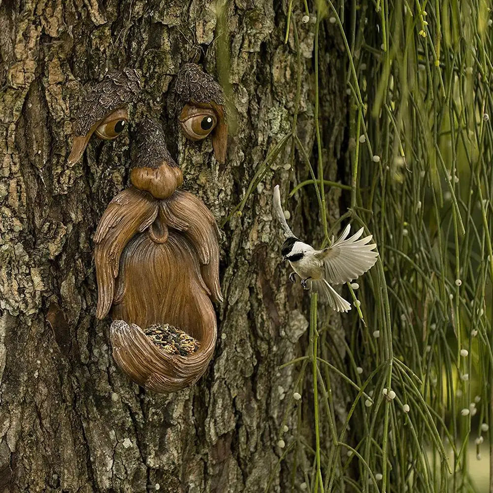 Omvandla din trädgård till en fantasifull oas med Roligt Vattentåligt Fågelmatare Trädgårdsprydnad. Denna härliga fågelmatare fungerar inte bara som en praktisk lösning för att mata dina fjäderbeklädda vänner utan fungerar också som en charmig trädgårdsprydnad, komplett med ett humoristiskt ansikte som garanterat fångar ögat. Tillverkad av hållbar, vattentålig resin, kombinerar detta stycke enkelt funktionalitet med stil och ger ett leende till alla som ser den.