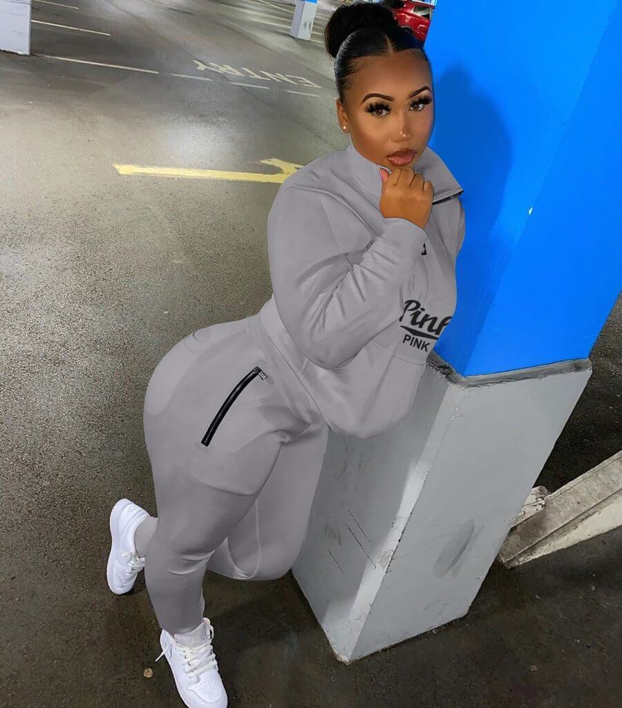 Tvådelad träningsoverall som du kan klä upp med klackar eller klä ner med tennisskor! Du väljer själv! Du kan välja att bära svart eller grått och göra dig redo för att komplimangerna kommer att rulla in! Du är vacker!