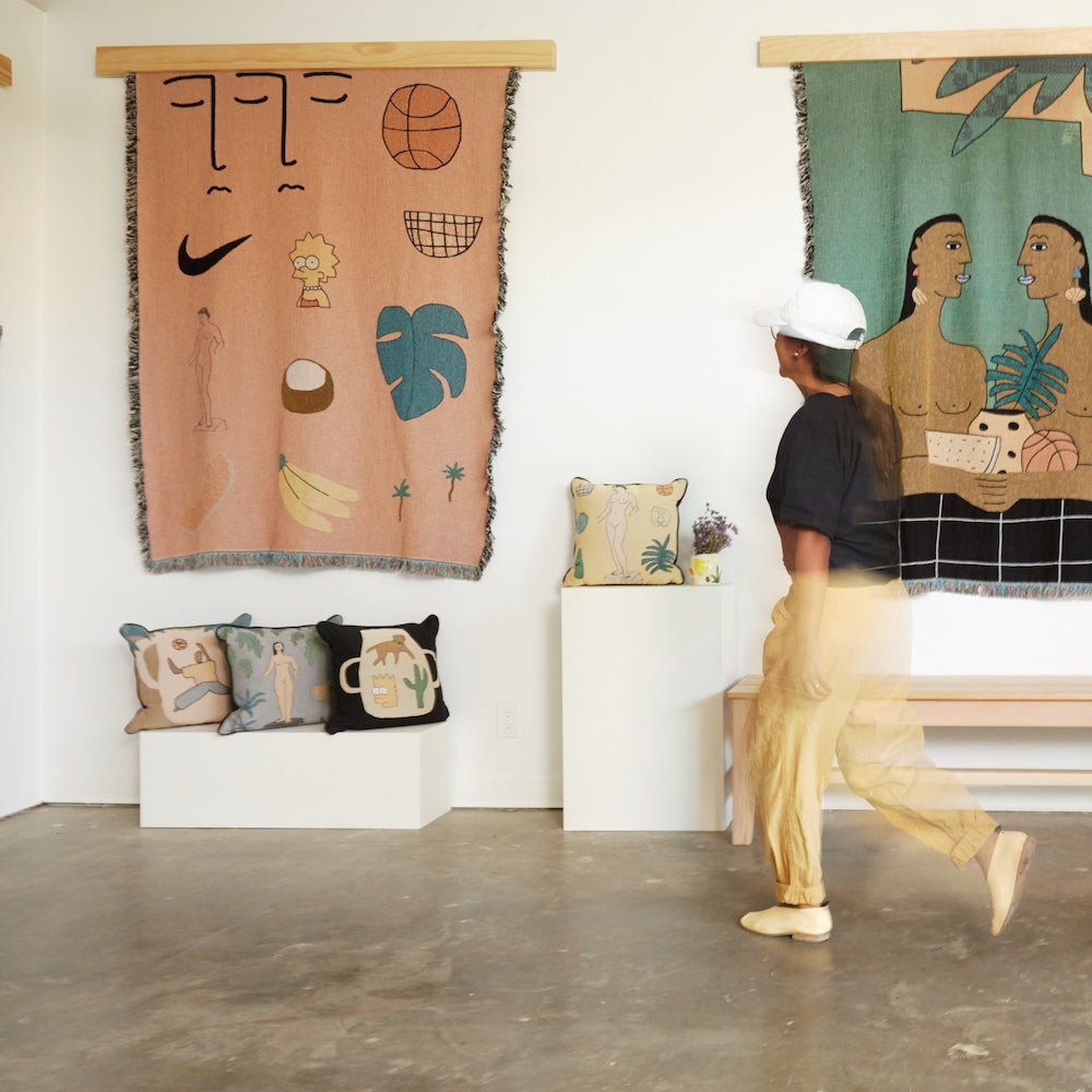 Ljusa upp ditt utrymme direkt med Pink Muse Woven Blanket, som har en färgglad blockdesign. Tillverkad av andningsbar mikrofiber och bomull, erbjuder denna filt hållbarhet och komfort, vilket gör den till en elegant tillägg för alla säsonger.