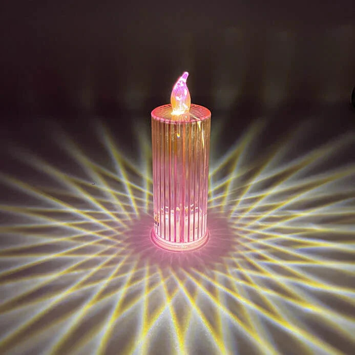 RoseGlow LED Crystal Candle Light erbjuder ett unikt alternativ till traditionella stearinljus genom att kasta ett vackert rosemönster som glittrar som en kristall. Dess mjuka glöd skapar en romantisk stämning, perfekt för middagsbord, nattduksbord eller andra intima miljöer. Den visuella 3D-effekten av en blommande ros ger ditt rum en elegant touch och gör det idealt för speciella ögonblick.