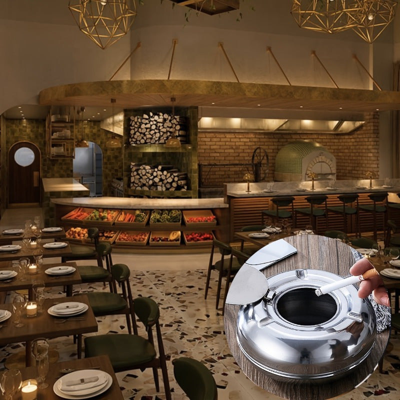Rostfritt Stål Askfat med Lock – Vindskyddat och Rostfritt Askfat för Inomhus- och Utomhusbruk