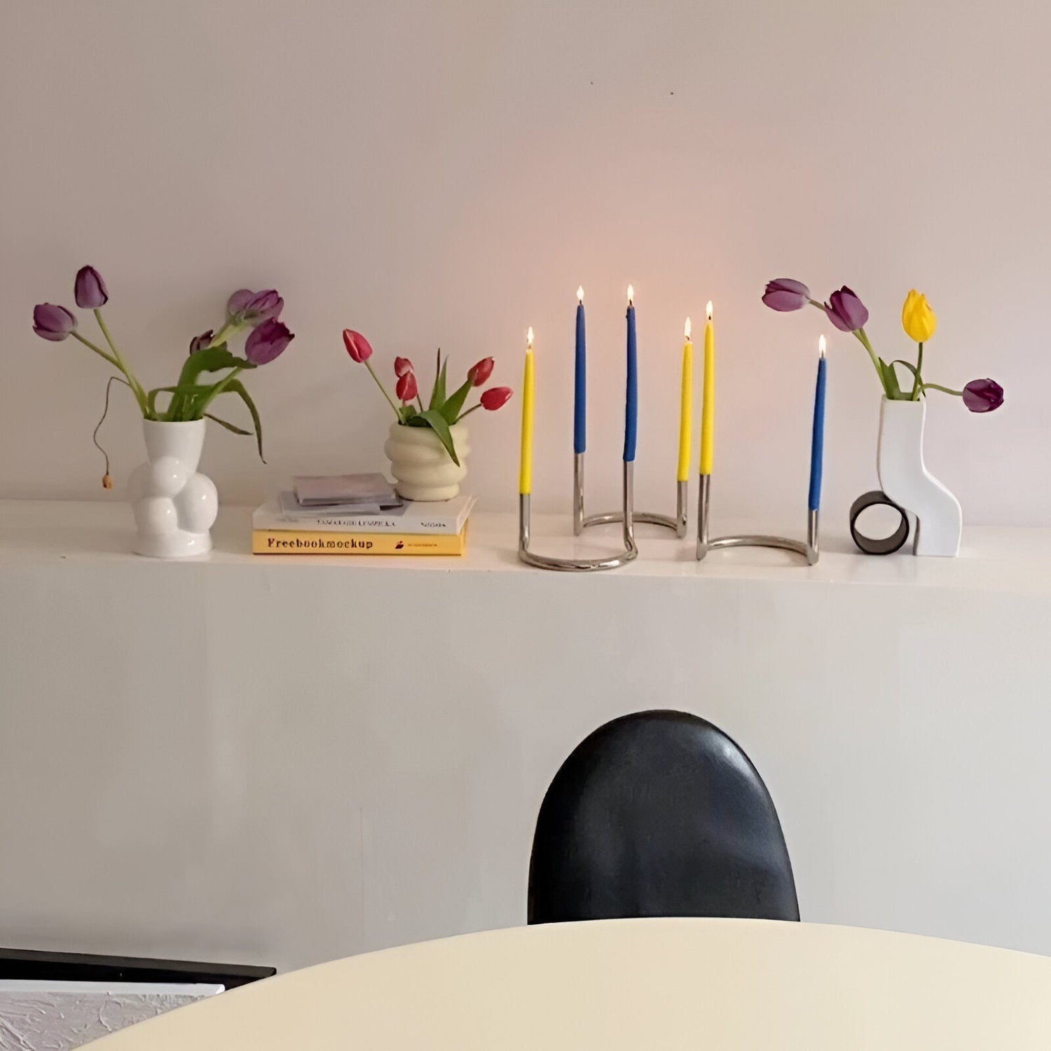 Add a touch of classic design to your home with this elegant stainless steel candlestick. The U-shaped tubular design holds two candles perfectly, creating a modern and stylish focal point. Elevate your decor with this unique and functional piece.