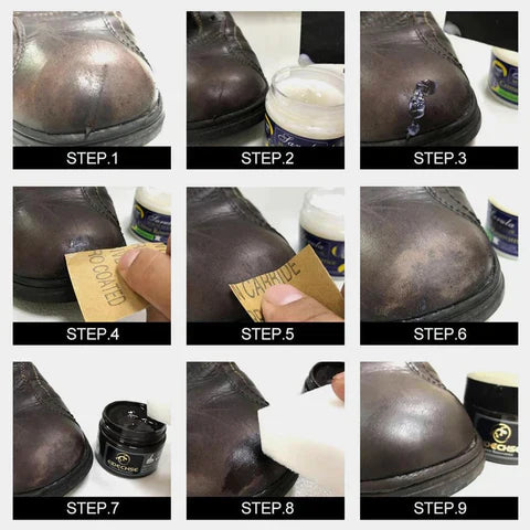 Dina använda läderprodukter kommer att se fräscha ut igen tack vare den rena utseendet av läderreparationskrämen, som också skapar ett skyddande lager för att försena läderåldrandet. När krämen har trängt in och stärkt och ökat hållbarheten av objekten kan den inte avlägsnas med vatten. Med denna läderreparationskräm kan du reparera din lädersoffa, bilsäten, plånböcker, väskor eller skor och välja från fyra olika omfärgningsbalsamer för att återställa deras ursprungliga färg.