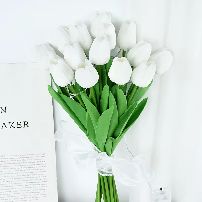 - Realistisk design: Tillverkad med PE-material för ett naturligt utseende och känsla som efterliknar färska tulpaner.