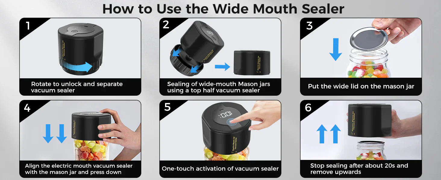 Tar bort luft från Mason burkar för att minska oxidation och bakterietillväxt - perfekt för torra varor, inläggningar, kryddor, snacks och mer