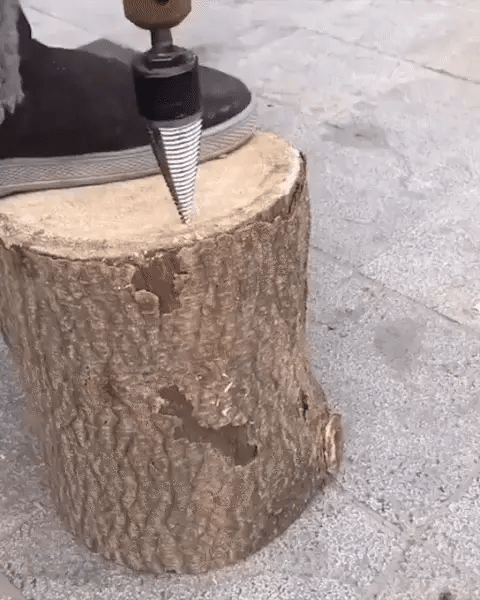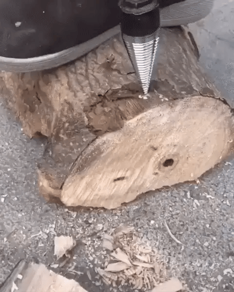 3. Borra in i vedstocken—låt borren göra jobbet medan den klyver träet rent och effektivt.