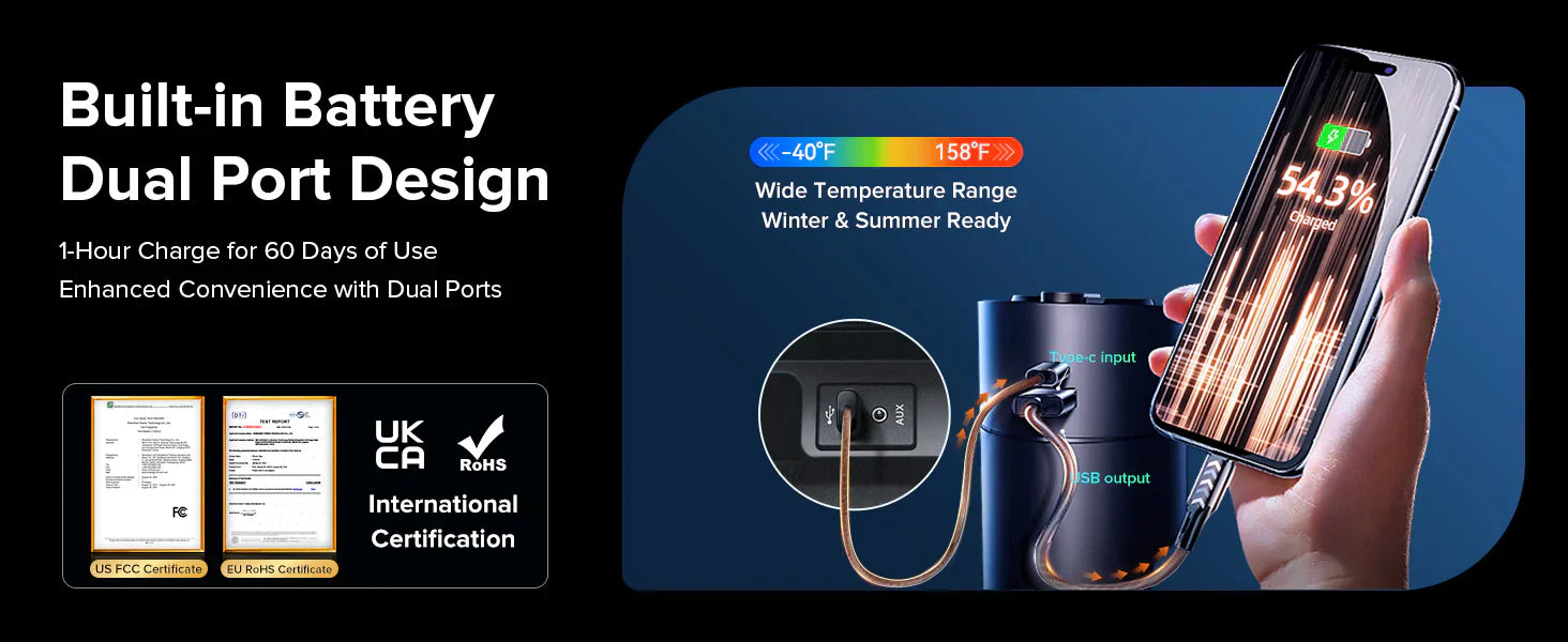 Fungerar pålitligt från -40°F till 158°F, vilket gör den lämplig för både kalla vintrar och heta sommardagar.