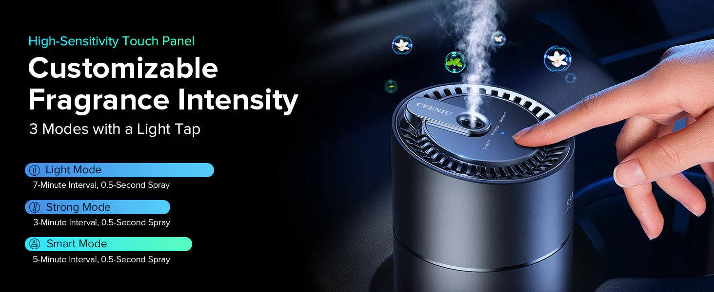 Tre intensitetsnivåer låter dig personifiera doftutsläppet för att passa dina preferenser och miljö.