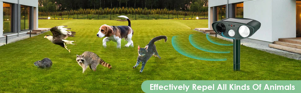För att hålla oönskade djur och skadedjur borta använder den ultrasoniska kaninavvisaren uppgraderad elektromagnetisk teknik. Den släpper ut en mängd kraftfulla, djupt penetrerande ultrasoniska ljud för att skrämma bort olika djur och skadedjur. Avvisaren, som har en infraröd rörelsesensor, aktiveras så snart ett djur upptäcks.