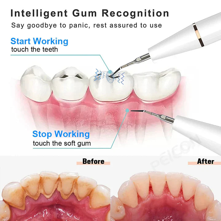 Vår plackborttagare har en sensor som stoppar den från att fungera när den kommer i kontakt med dina tandkött. Den förhindrar oavsiktliga skador under borstning och garanterar en smärtfri och behaglig upplevelse.