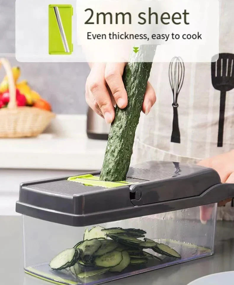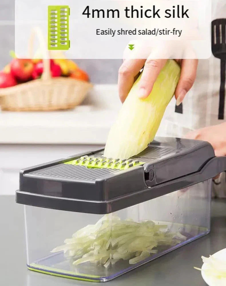 Transformera din måltidsförberedelse med Royallure 14-i-1 Grönsaksskärare och Hackare—ett mångsidigt köksverktyg utformat för att göra skärning, rivning och hackning enkelt. Oavsett om du förbereder tomater, morötter, lökar eller andra ingredienser, hjälper detta kompakta verktyg dig att spara tid och uppnå konsekventa resultat med lätthet.